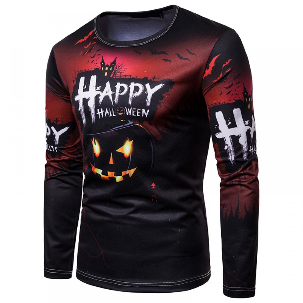 Explosive Halloween 3D Printing Round Neck Long Sleeve