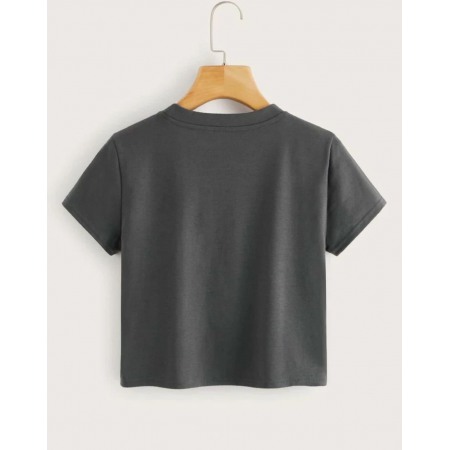 Letter Print Round Neck Short T-Shirt