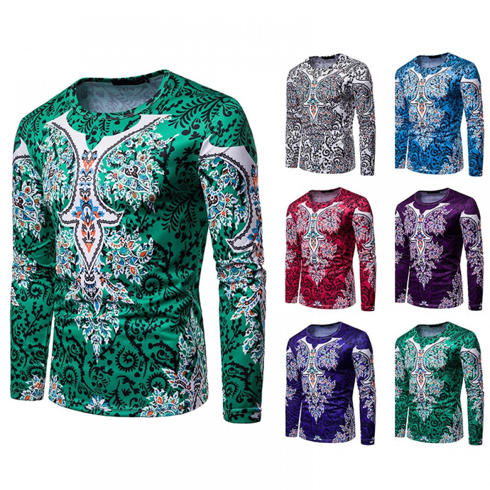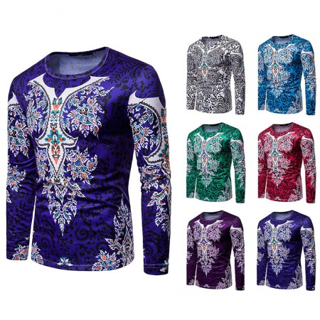 Men's Ethnic Style Floral 3D Printing Round Neck Long Sleeve T-Shirt