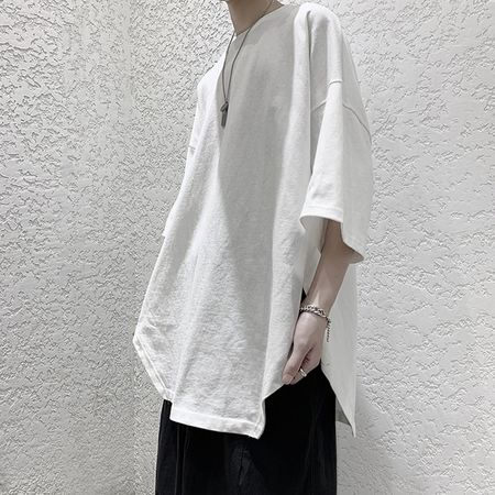 Summer New Men's Stitching Mid-Length Round Neck Short-Sleeved T-Shirt Mens