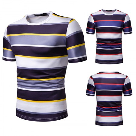 New Summer Men's Short-Sleeved T-Shirt Men's Contrast Striped Slim Casual T-Shirt