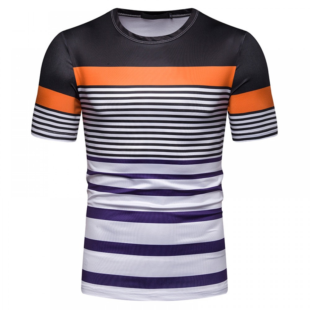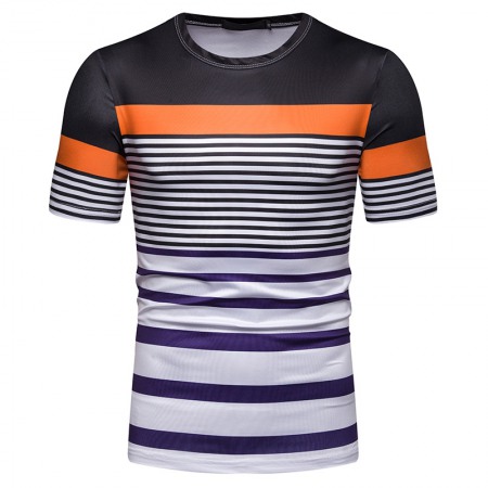 New Summer Men's Short-Sleeved T-Shirt Mens Contrast Striped Slim Casual T-Shirt